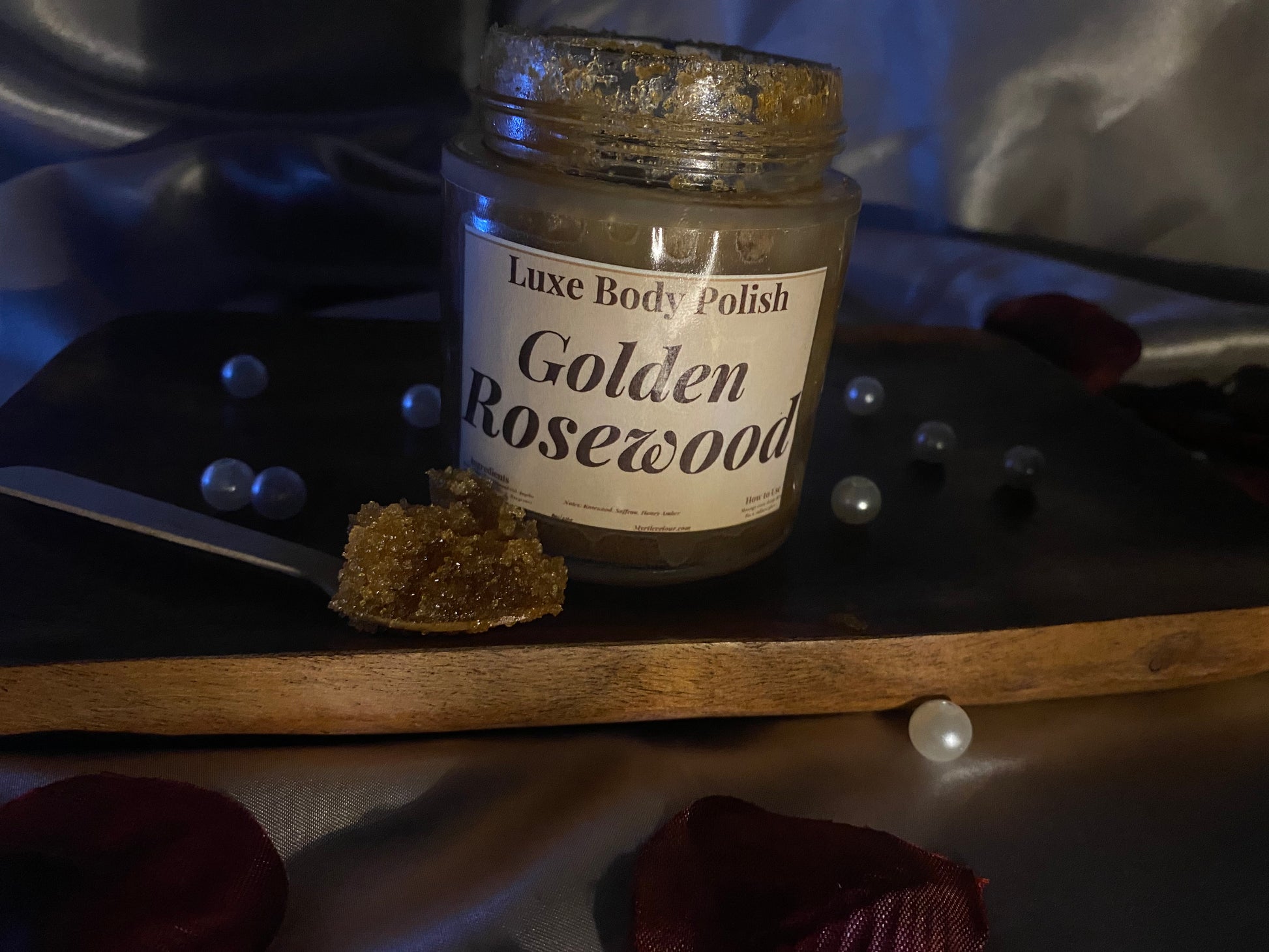 Scoop and polish onto damp skin, especially elbows, arms, and legs. Rinse, pat dry, and follow with the Golden Rosewood Créme or Body Oil for the full radiant ritual.